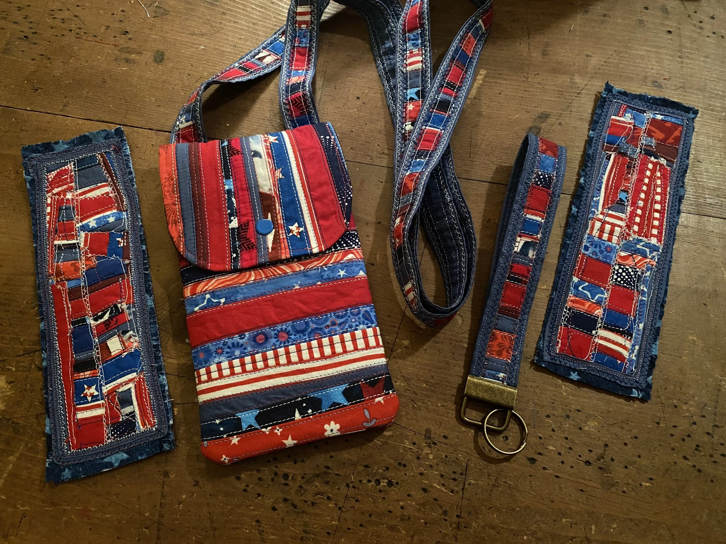 Here is an image showing the 2 bookmarks, my phone purse and one of the wristlet keychains (I had already given my sister one of them).